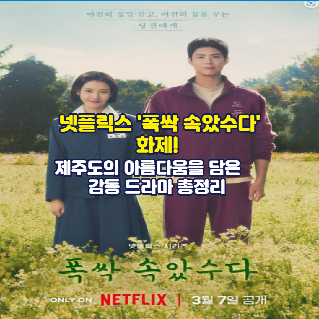 넷플릭스 신작 드라마 **'폭싹 속았수다'**가 공개되자마자 큰 화제를 모으고 있습니다. 제주도 특유의 아름다운 자연경관과 독특한 방언이 담긴 이 드라마는 감동적인 스토리로 시청자들의 마음을 사로잡고 있습니다. 과연 어떤 드라마이기에 이렇게 인기를 끌고 있는지, 자세히 살펴보겠습니다.