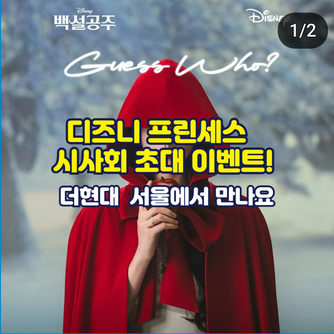 디즈니 코리아가 준비한 '백설공주' 팝업스토어에 이어, 이번에는 특별한 프린세스 시사회 이벤트를 소개합니다. 새롭게 돌아온 <백설공주>를 가장 먼저 만나볼 수 있는 기회로, 디즈니 팬이라면 놓칠 수 없는 특별한 행사입니다.